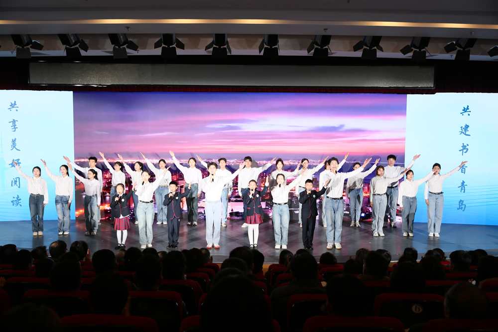 启动仪式上,学校22名学生以一场精彩的诗歌朗诵《青岛之书:打开蓝色的乐章》为大会献上了精彩表演,他们的朗诵不仅传递了阅读的魅力,更展现了文化的深厚内涵,赢得了在场观众的阵阵掌声。