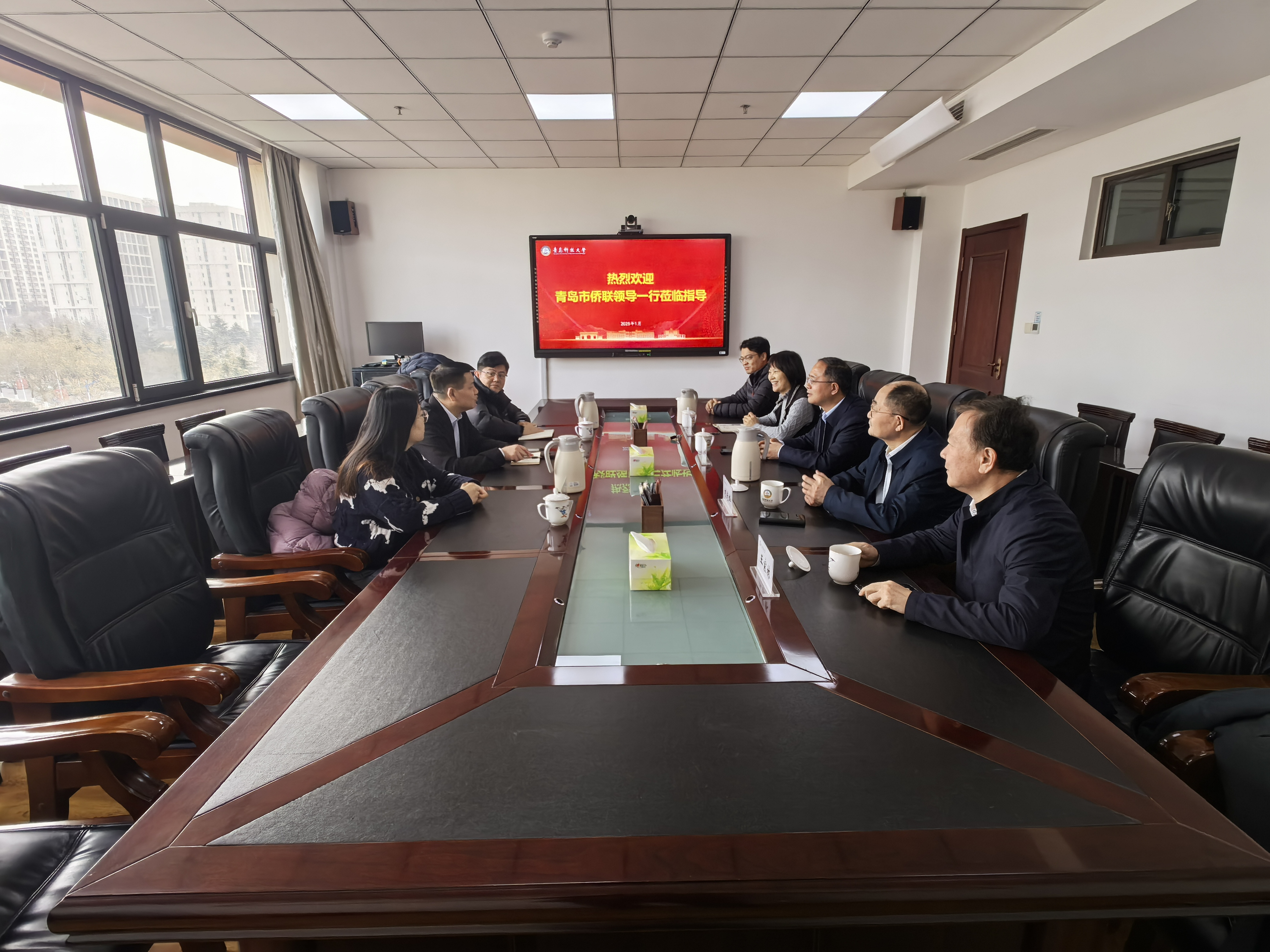 罗细亮代表学校党委对牛旭东一行的到来表示欢迎,对青岛市侨联长期以来关心支持学校事业发展、侨务工作表示感谢。他表示,希望青岛市侨联能够进一步加强对学校侨联工作的指导,多为侨届优秀人才更好地发挥作用搭台子、架梯子、压担子。同时,希望学校广大归侨侨眷能够发挥人才优势作用,进一步加强校地融合创新发展,为学校高水平大学建设和区域经济社会高质量发展做出新的贡献。