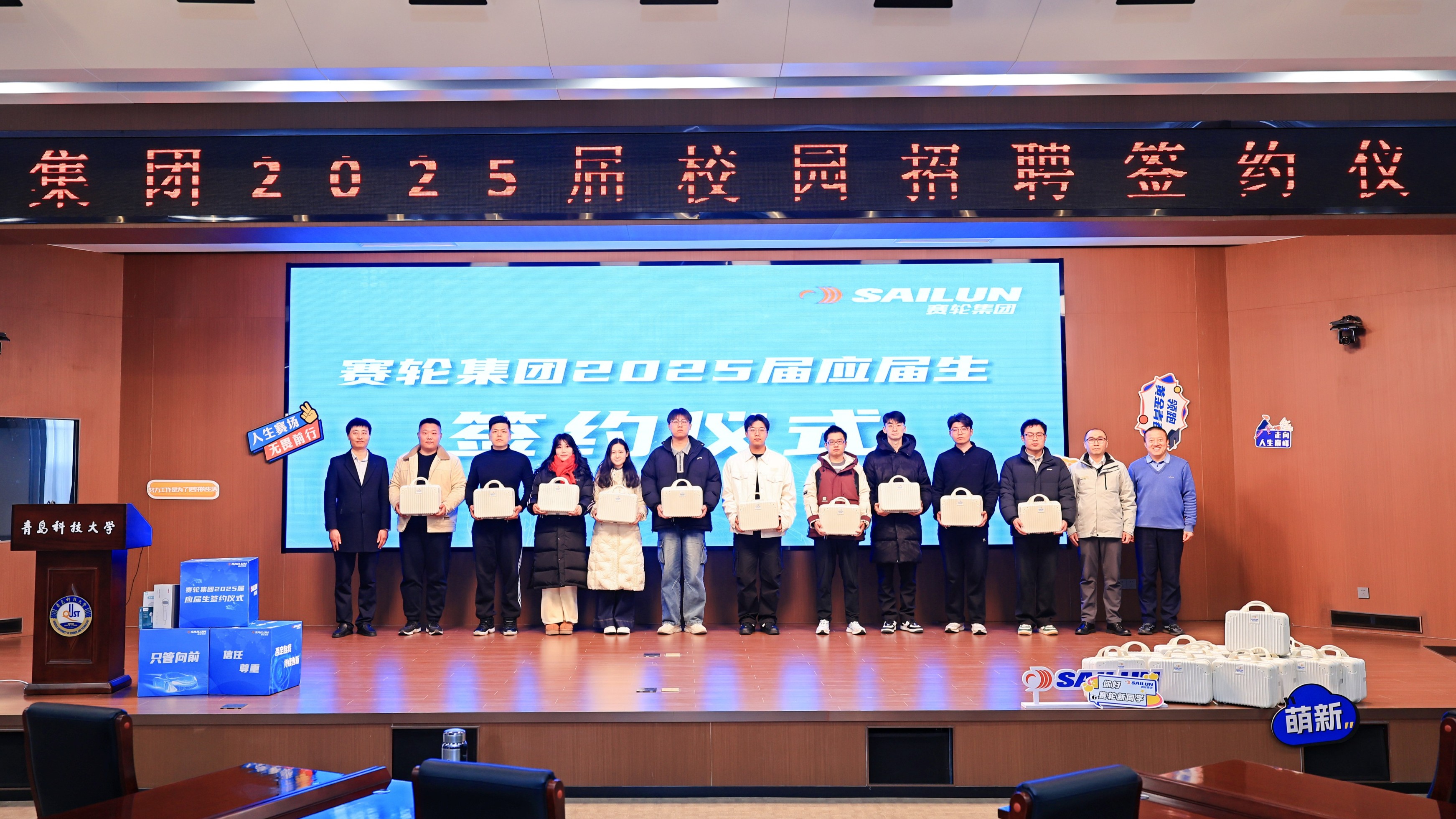 3月4日,“领跑黄金未来”赛轮集团2025届应届毕业生集体签约仪式在beat365正版唯一官网必一软控报告厅举行。赛轮集团生产中心副总经理杨凯、学生处副处长兼就业指导中心主任徐华、机电工程学院党委副书记杨小明及24名签约毕业生参加活动。