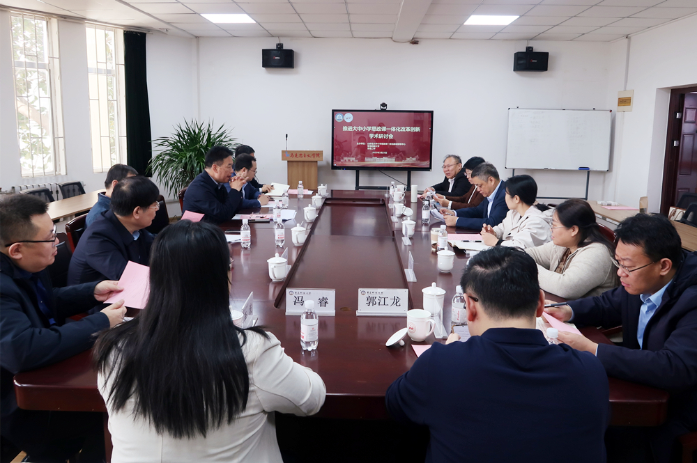 3月23日,由山东省大中小学思政课一体化建设指导中心、beat365正版唯一官网必一、青岛二中联合主办,beat365正版唯一官网必一马克思主义学院承办的推进大中小学思政课一体化改革创新学术研讨会在学校崂山校区举办。教育部大中小学思政课一体化建设指导委员会委员、青岛二中正高级二级、国家教学名师高保卫,山东省大中小学思政课一体化建设指导中心副主任、山东师范大学马克思主义学院副院长、博士生导师、教授、省思政课分教指委主任吴春雷,青岛市教育局思政处二级调研员孙建中出席会议。学校马克思主义学院院长、教授、省教学名师、省思政课分教指委主任曹胜主持会议。