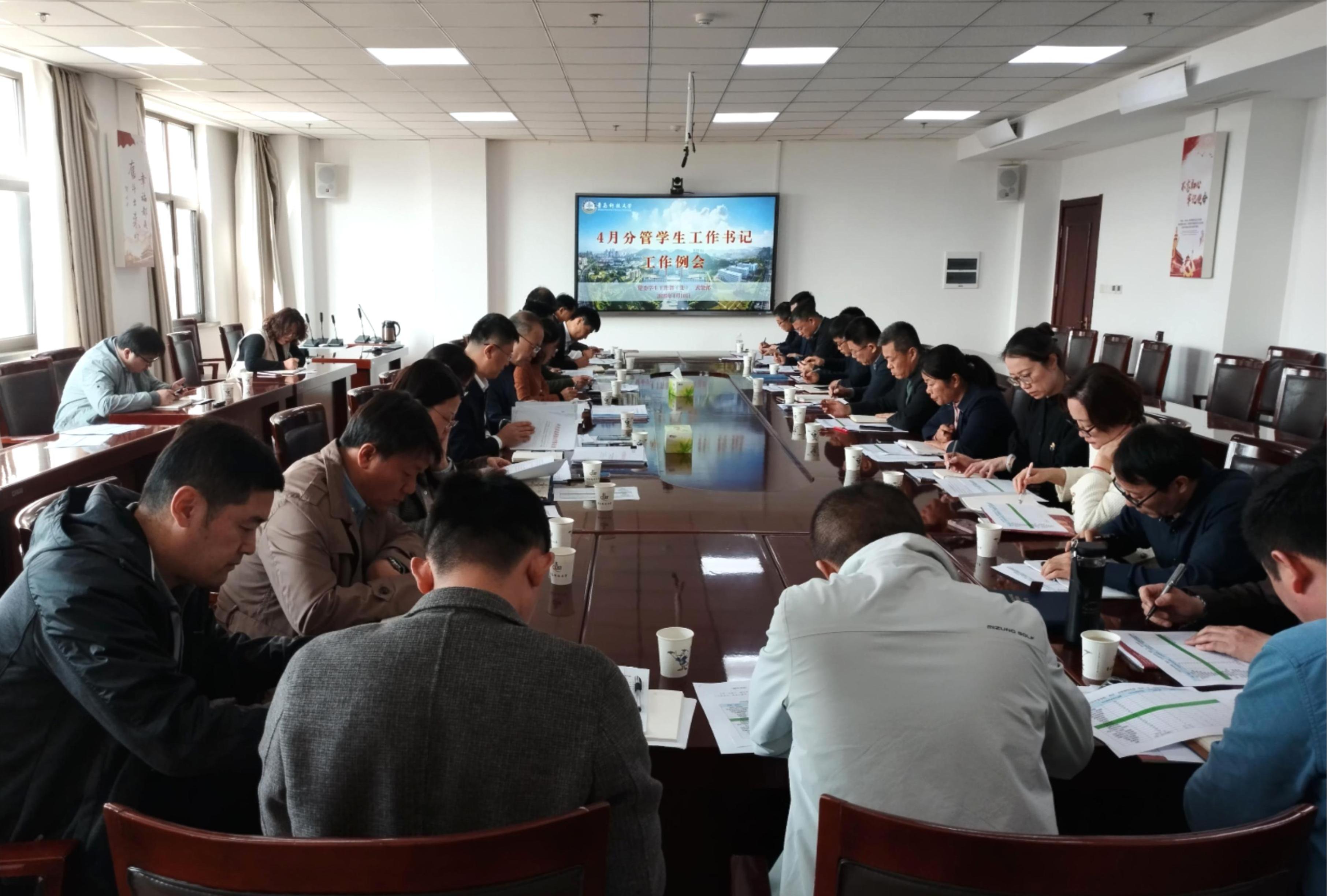 4月10日,学校4月份分管学生工作书记月度例会在崂山校区综合服务楼3015会议室召开。党委常委、副校长丁林出席会议。党委学生工作部部长王丽主持会议。