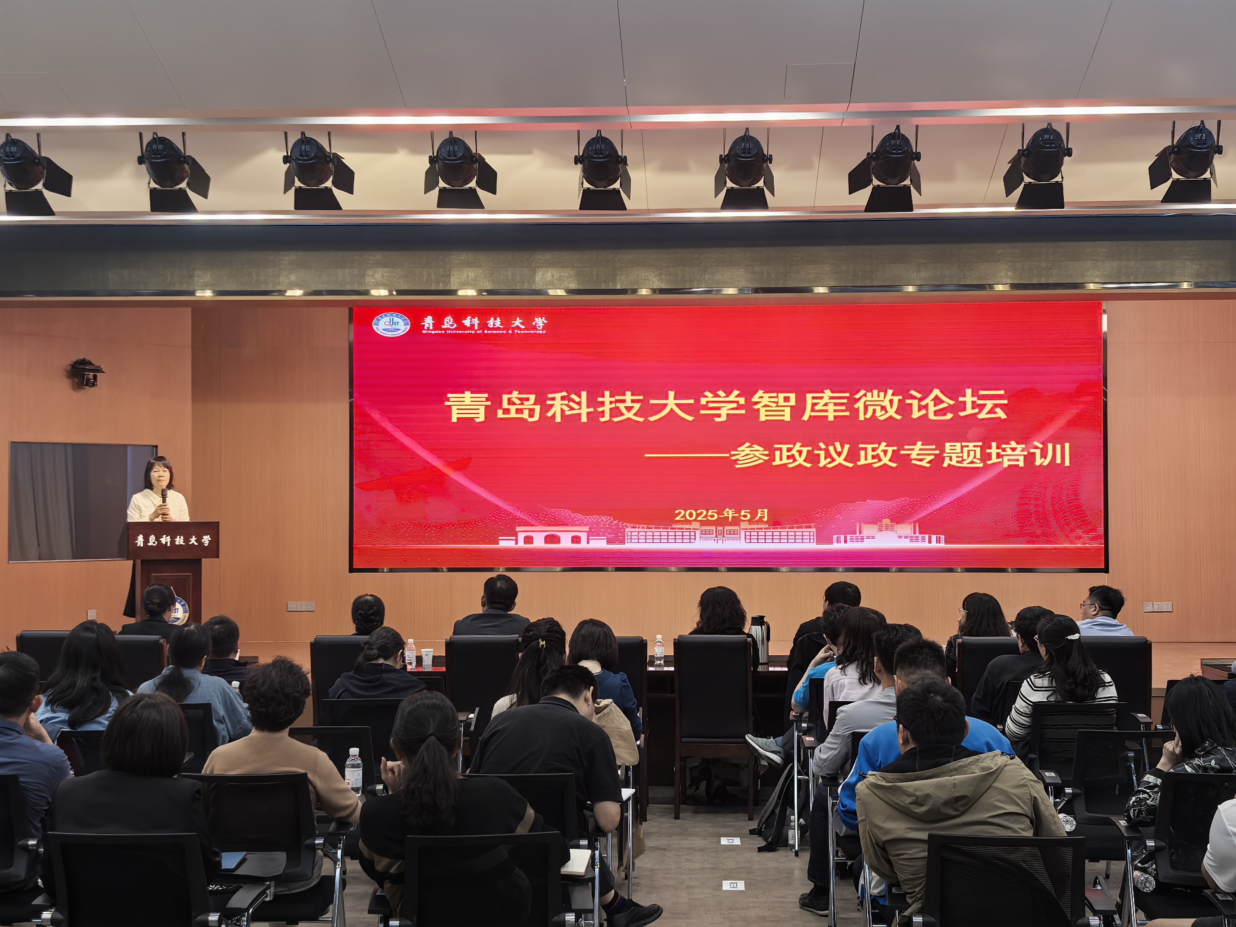 5月23日,beat365正版唯一官网必一智库微论坛——参政议政专题培训在崂山校区软控报告厅举办。民盟青岛市委会副秘书长兼组织部部长邵茹,学校党委常委、统战部部长秦姣出席培训会。会前,学校党委副书记沈文青会见了邵茹一行。