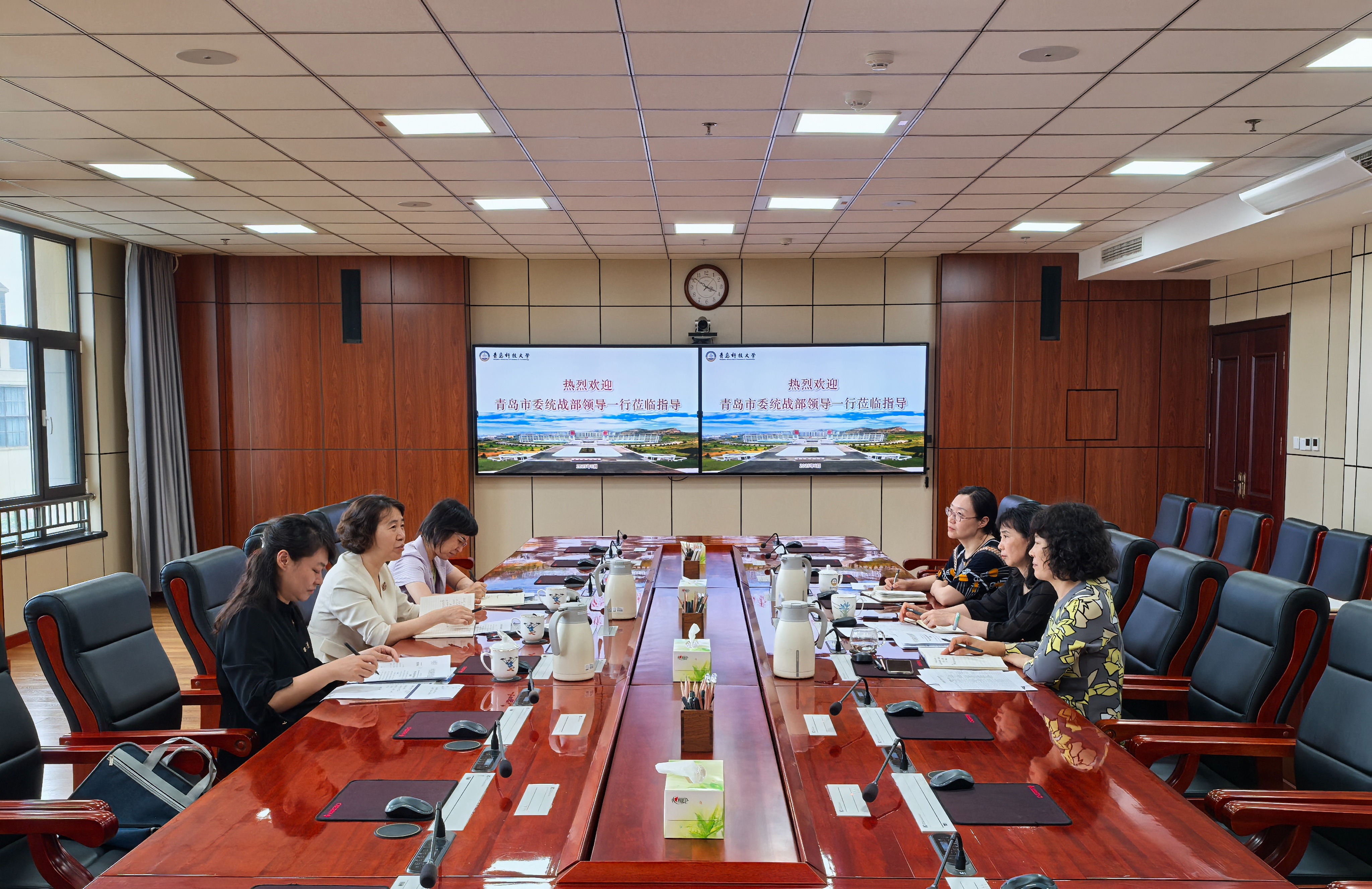 6月19日,青岛市委统战部分管日常工作的副部长刘青林一行来校调研。学校党委副书记沈文青,党委常委、统战部部长秦姣出席会议。