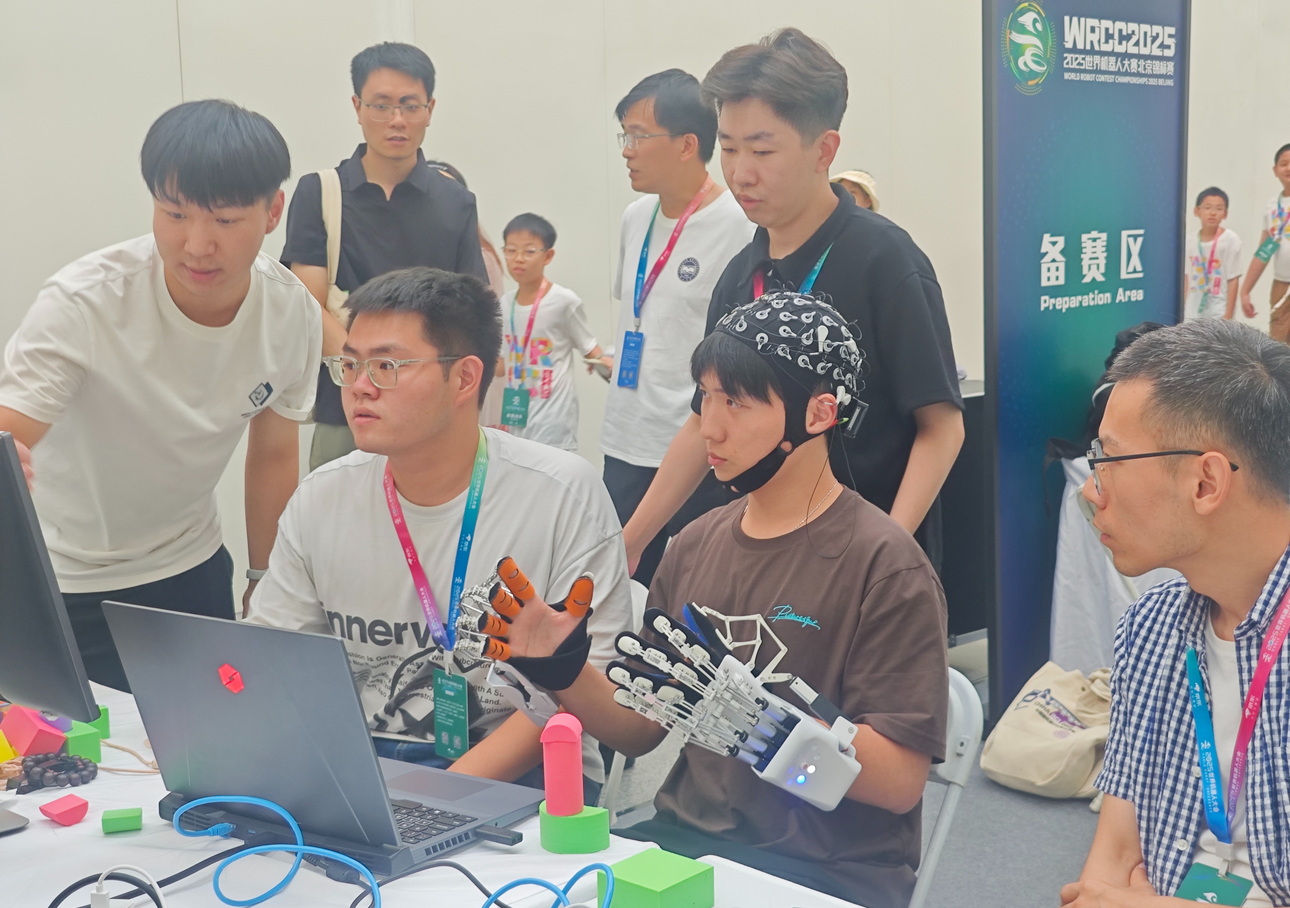 据了解,2025世界机器人大会(2025 WORLD ROBOT CONFERENCE)由中国电子学会、世界机器人合作组织共同主办,以“让机器人更智慧,让具身更智能”为主题。作为大会核心赛事之一,BCI脑控机器人大赛汇聚全球顶尖脑机接口研究力量同台竞技,集中展现该领域前沿技术成果与应用潜力,赛事竞争性与专业性备受业界关注。“康复机械手的脑机接口协作控制”赛项要求参赛者仅通过脑电信号(EEG)精准操控机械手完成指定积木搭建任务。