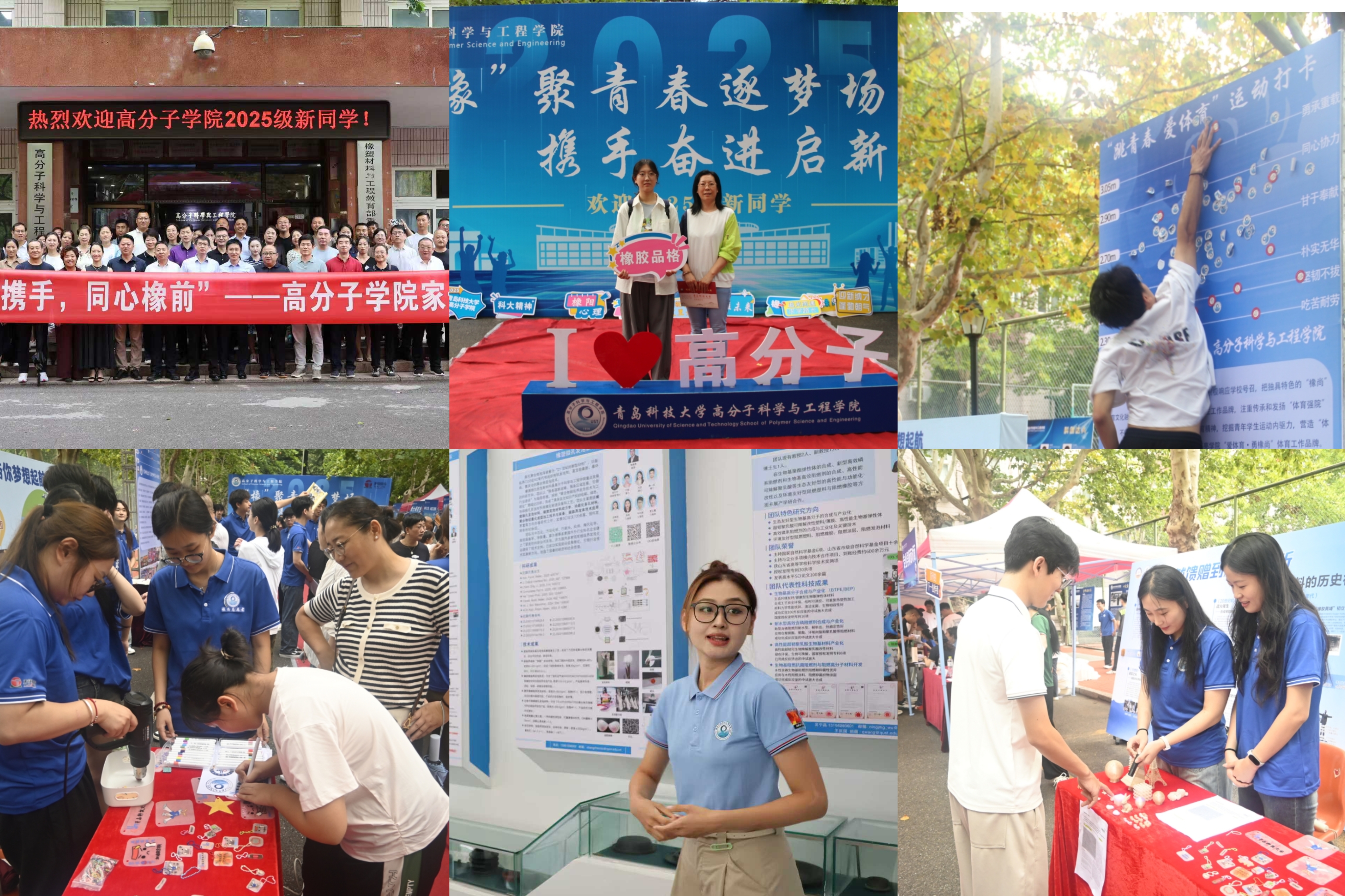 “三阶引领”,寓教于乐润初心。本次迎新工作以高分子材料学科特色为隐喻,形象构建了一个贯穿学期、逐层深入的“三阶引领”式新生入学教育体系。 橡遇高分子:如原料入库,初步识别。开展“家长开放日”活动,通过学院宣传片播放、院长面对面讲解、实验室参观等形式,向新生及家长全面展示了学院历史沿革、师资力量、科研成就及人才培养模式,增强了家校联动与信任。通过橡胶发展史展板、3D打印高分子材料实物展示,生动具象地增强了新生对专业的认知与兴趣。同时,结合纪念中国人民抗日战争暨世界反法西斯战争胜利80周年知识问答,寓教于乐,弘扬爱国主义精神。淬炼复合材:如共混改性,锤炼素养。聚焦德智体美劳全面发展,设置学院在高水平科创赛事中的突破性成果展区,精心设计“跳青春 爱体育”运动打卡与摸高挑战,鼓励新生强健体魄、挑战自我。开展专业导师面对面答疑活动,帮助学生规划明晰未来方向。“C位新生,请入框!”打卡墙,以高分子学科英文标语和喷绘合影墙,营造了浓厚的国际化与归属感氛围。成就高材生——如产品成型,规划未来。现场布置考研就业风云榜,科创达人等展板,以榜样力量激励同学们奋发向上。着眼于长远发展与生涯规划,通过“高院之星5S评价体系”展板,系统介绍自立自强、健体争先、热爱学习、社会实践、科技创新五大核心素养。以企业LOGO墙全景式呈现“认知实习-课程实践-暑期实践-毕业实习”的全链条实践教学体系。
