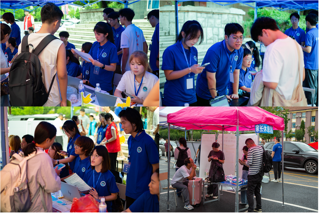 报到当天,志愿者们早早到岗,以饱满的热情投入全天服务。他们主动帮助新生搬运行李、发放入学纪念品,让初入校园的同学们倍感温暖。学院现场设置了“班主任工作站”“党员先锋岗”,及时为新生及家长答疑解惑;通过“考研信息展”“优秀学子风采”等展板,多角度展示学院育人成果;设立“绿色通道”,切实保障家庭经济困难学生顺利入学。学院开设“院长课堂”以帮助新生快速了解学院、明确发展方向并建立归属感。学院还专门编印《新生手册》,内容涵盖学院概况、专业介绍、团学活动、学生会职能及防诈骗指南等,帮助新生快速了解校园、适应新环境、树立正确的学习生活目标。