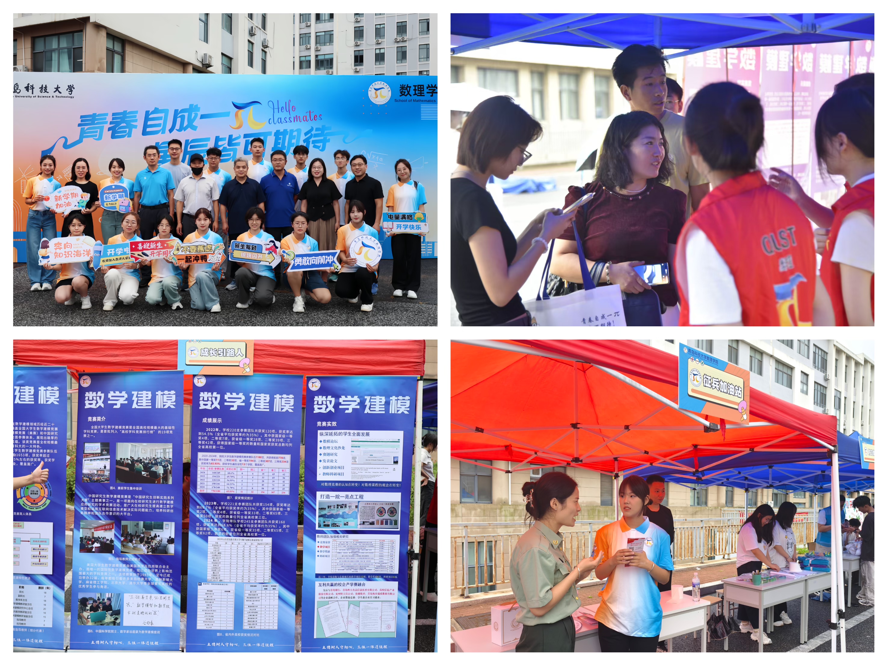 沉浸:“青春π对”驿站营造沉浸式报到体验。报到当天,学院以“π”为灵感,巧妙融合学科符号与青春主题,打造了“青春π对”迎新驿站。现场设置十大功能区,包括报到区、专业咨询台、科创互动体验区、文体娱乐区、主题喷绘打卡点等,流程清晰、服务高效,极大提升了新生的入学体验。学院还为每位新生精心准备了“迎新礼包”,内含学院介绍册、纪念T恤、文创手办等,既实用又具收藏意义,迅速拉近了新生与学院之间的情感距离。整个报到现场既洋溢着青春的活力,又渗透着数理文化的独特韵味,成为校园中一道亮丽的风景线。