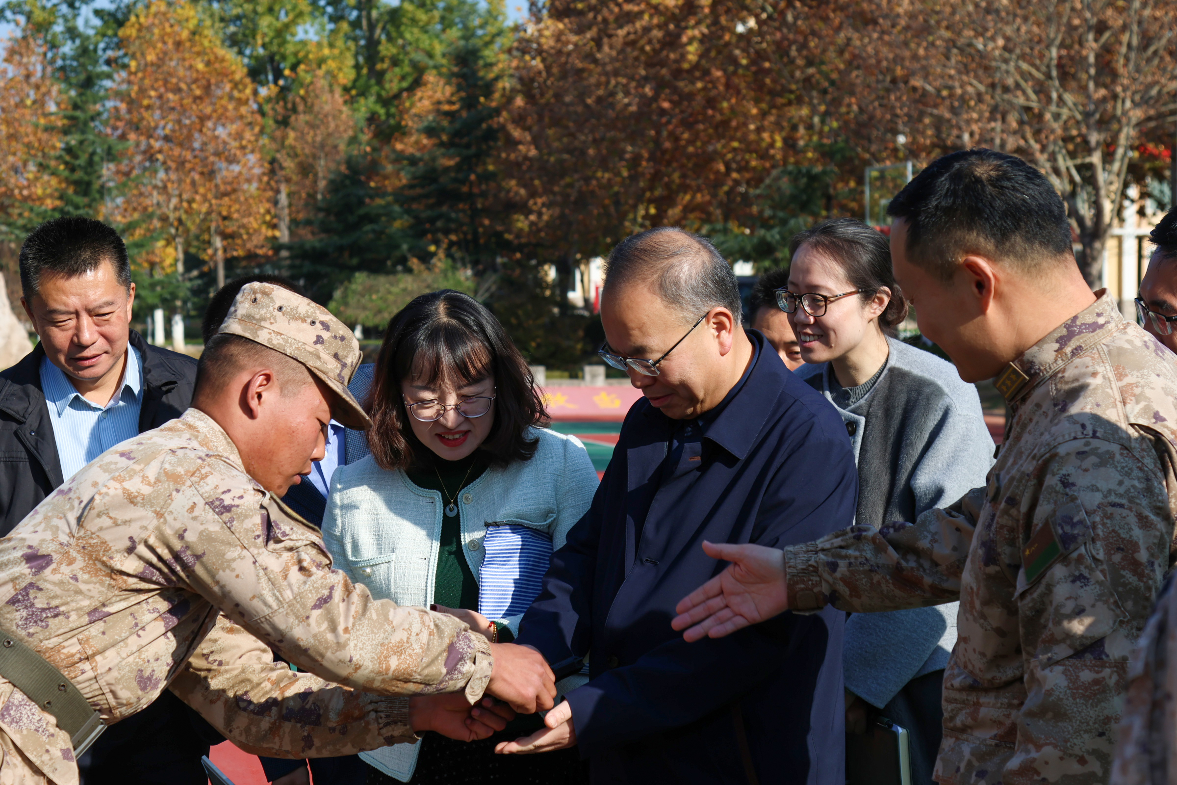 活动中,双方围绕校军共建进行了座谈交流。丁林表示,要立足强军育人,聚焦培养更多高素质军事人才,紧密结合部队建设需求和学校学科专业特色及优势抓好共建协议的落实,推动校军双方在国防教育、军事训练、征兵育人等领域深入合作与共建,切实把共建优势转化为建设实效。部队相关负责人介绍了有关情况,并代表该部官兵向beat365正版唯一官网必一长期以来的支持表示感谢,表示将以此次共建签约为契机,推动军校资源共享、优势互补,提供优质条件、搭建交流平台,支持和助力学校人才培养等工作。