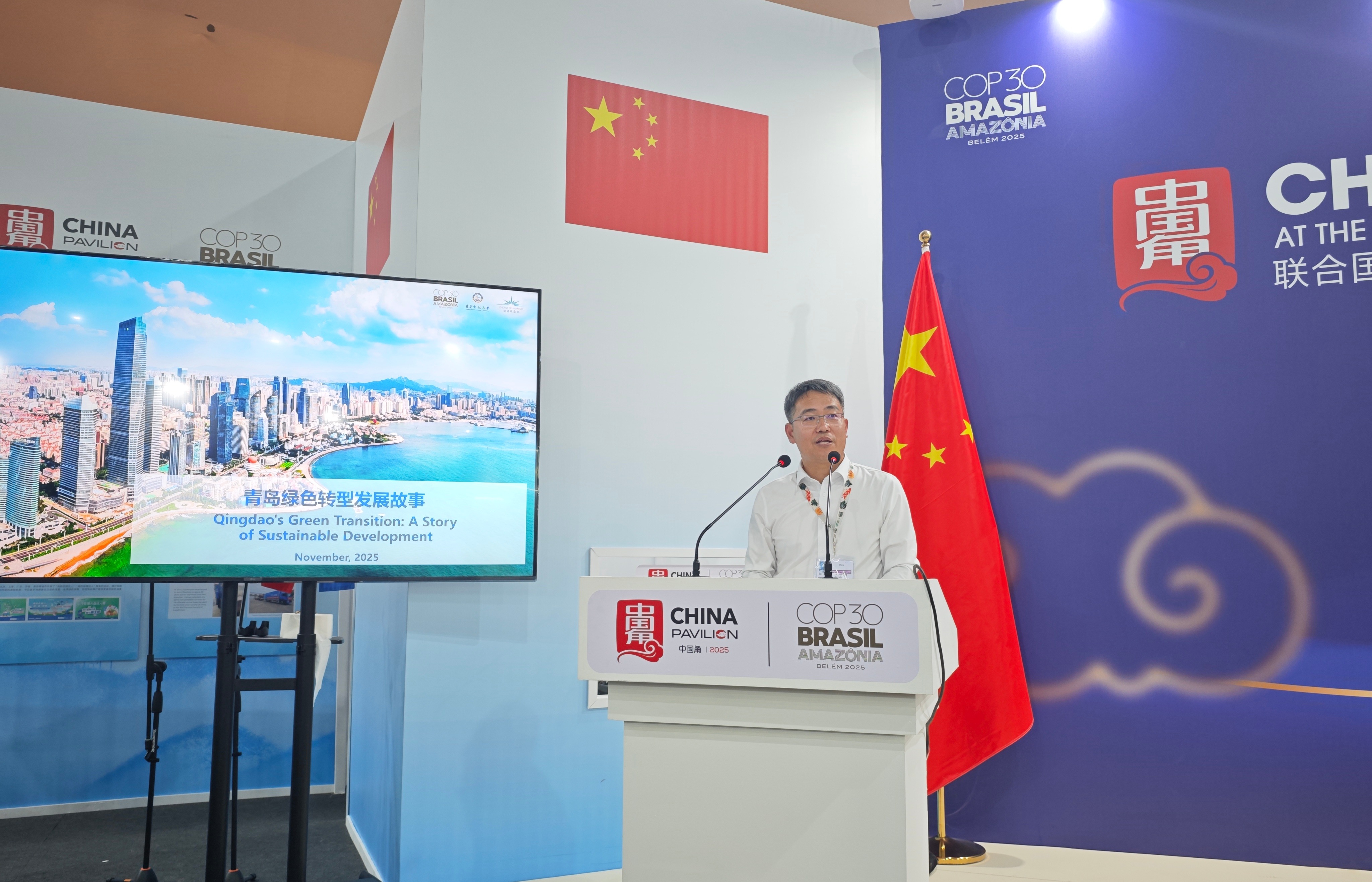 当地时间2025年11月17日,学校气候变迁与能源可持续发展研究院主持完成的《青岛绿色转型发展报告》,在巴西贝伦召开的《联合国气候变化框架公约》第三十次缔约方大会(COP30)中国角“共建绿色低碳的美丽城市”主题边会上正式发布。本次边会由生态环境部应对气候变化司指导,生态环境部宣传教育中心主办,联合国训练研究所(UNITAR)、CGTN、山西省生态环境厅、beat365正版唯一官网必一、清华大学气候变化与可持续发展研究院等单位联合主办。COP30中国代表团团长、生态环境部副部长李高致辞。