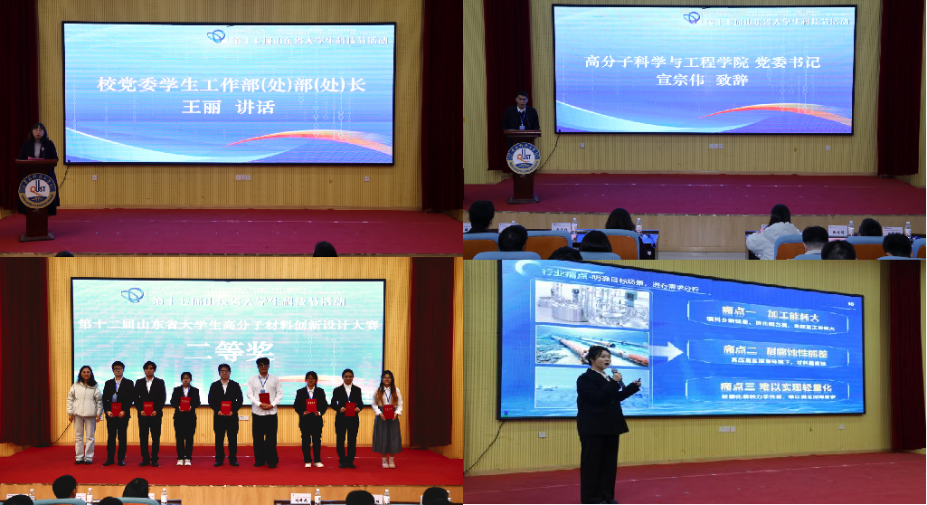 11月28日,由山东省科协、省教育厅、团省委、省发改委、省工信厅、省人社厅主办,青岛市科学技术协会、beat365正版唯一官网必一承办的第十二届山东省大学生高分子材料创新设计大赛在四方校区举行。