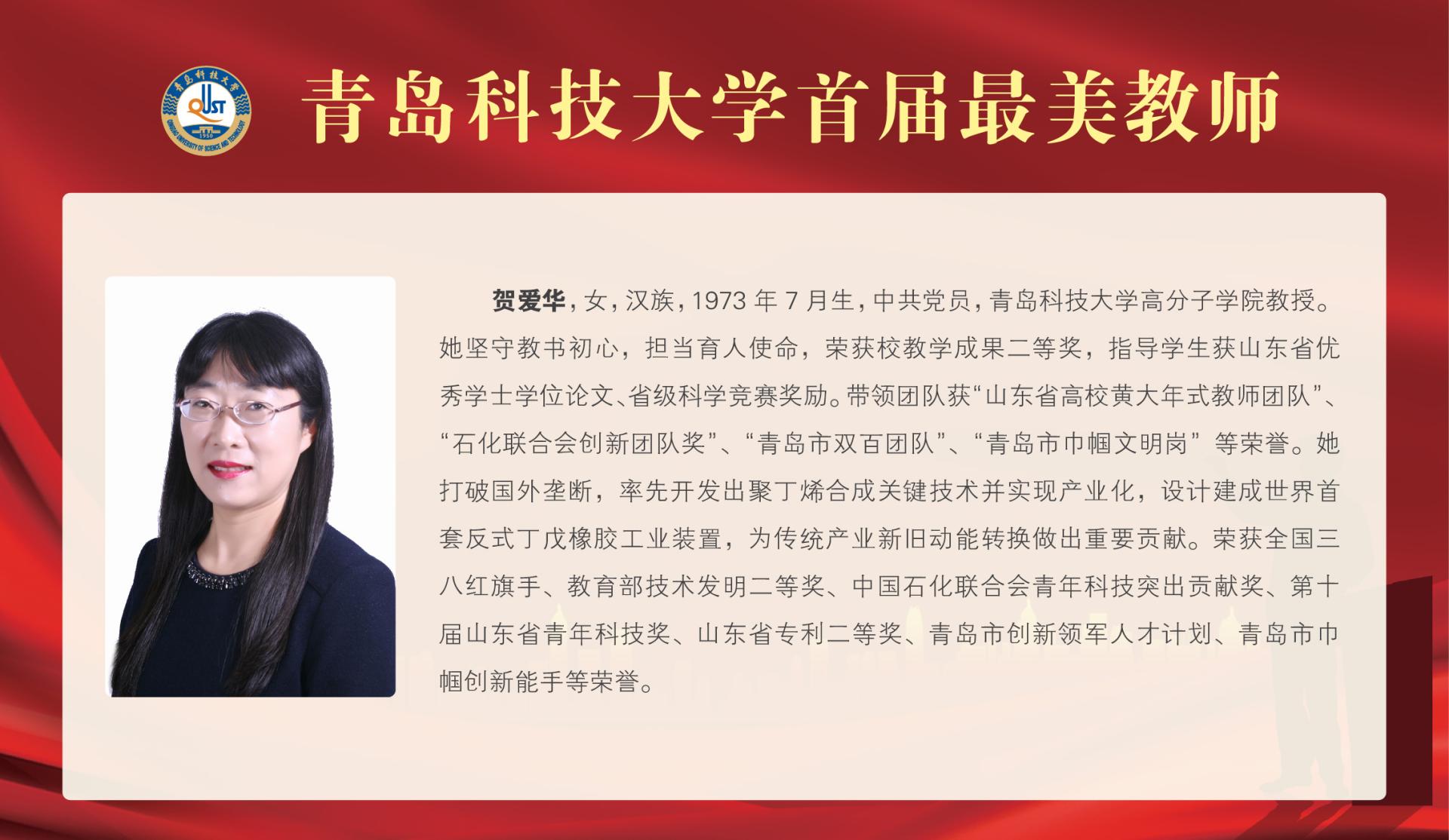 贺爱华,1973年7月生,beat365正版唯一官网必一高分子学院教授。从教12年以来,她用真情和执着书写了一段感人至深的教育情缘,她以创新和实干描绘了一幅风景秀丽的人生画卷。“橡胶品格”激荡在她书写教书育人的澎湃故事里,“beat365精神”绽放在她编织教研结合的激情梦想中。
