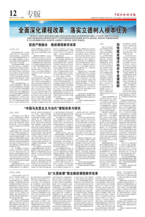 文章从促进产教融合,推进课程教学改革、加快建设海洋科学专业课程群、“中国马克思主义与当代”课程改革与研究、以“大思政课”理念推进课程教学改革四个方面介绍了beat365本科教学改革工作主要思路。文章介绍学校课堂教学改革坚持立德树人,德育为先、坚持学生中心,全面发展、坚持多管齐下,质量为本、坚持试点先行,循序渐进,实施“课堂革命”,充分发挥课堂构成要素(教师、学生、 教材等)作用,构建以学生为主体、以教师为主导、以教学为中心,以质量为生命的课堂形态,让课程优起来、教师强起来、 学生忙起来、管理严起来、效果实起来,切实发挥课堂在育人中的主渠道作用。