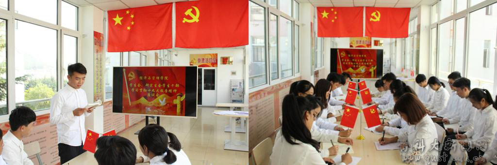经管学院党总支通过研读原文、座谈宣讲、专题党课等多种形式广泛宣传贯彻落实党的十九大精神。学院党总支成立“十九大精神宣讲团”,组织全体师生党员集中观看了“十九届一中全会公报”和“习近平:切实学懂弄通做实党的十九大精神,努力在新时代开启新征程续写新篇章”的新闻报道;校领导和处级干部全部深入学院联系班级,召开“学习宣传贯彻十九大精神”主题班会;学院各党支部组织开展了《习近平谈治国理政》第二卷专题学习等活动;学院各学生党支部、团支部和学生会等学生组织开展了以“学习贯彻十九大,青春责任正当时”为主题的专题党课学习活动。