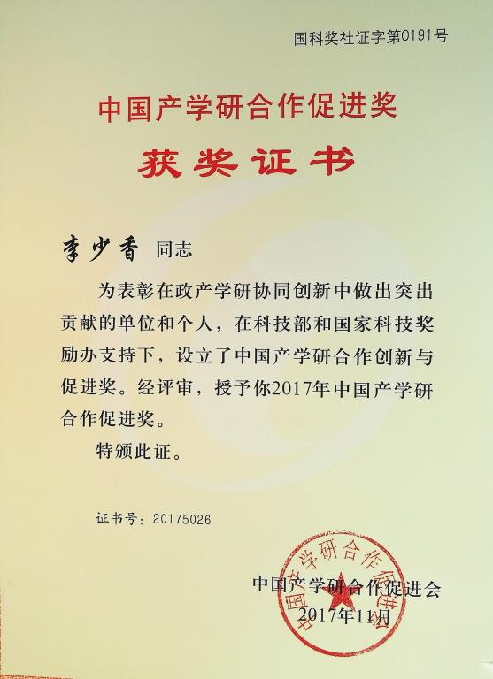 11月12日,在济南举行的第十一届中国产学研合作创新大会上,beat365正版唯一官网必一荣获2017年度“中国产学研合作创新奖”,合作发展处处长李少香荣获2017年度“中国产学研合作促进奖”。