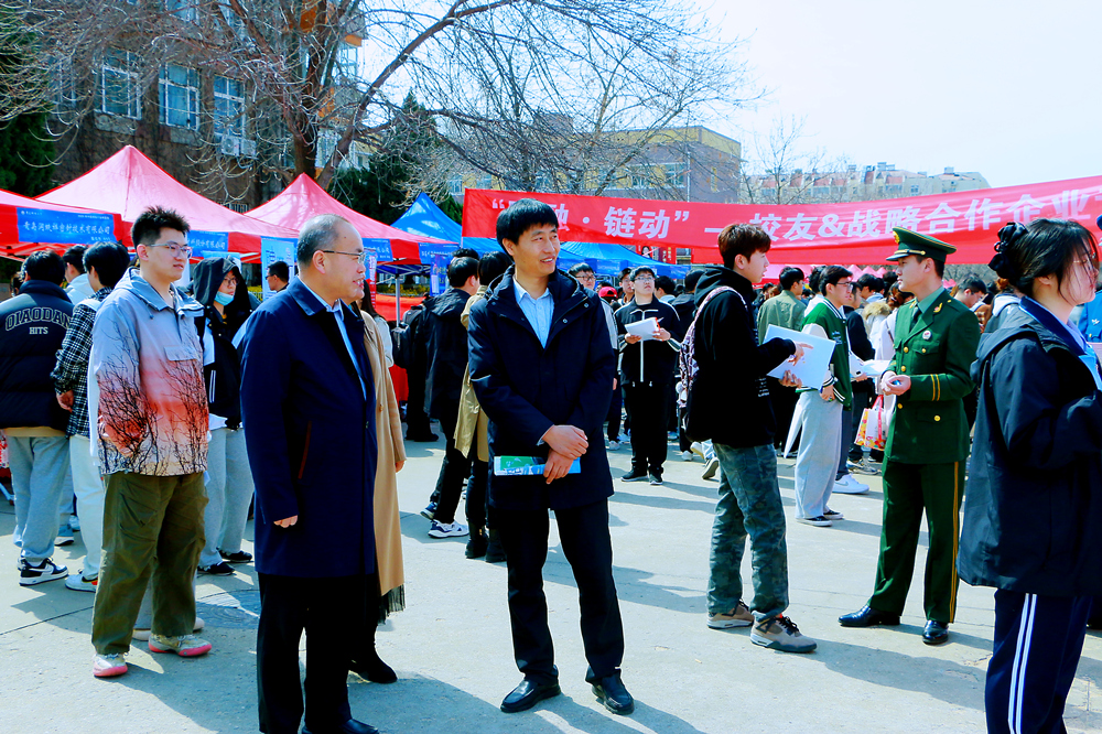 3月28日,由beat365正版唯一官网必一主办、高分子科学与工程学院承办的“橡聚英才·胶筑未来”第三届中国橡胶行业专场招聘会在四方校区小五四广场举办。校长陈克正,党委常委、副校长丁林亲临现场,详细了解企业人才招聘需求和对学校人才培养的意见建议,并与毕业生亲切交流,勉励毕业生树立正确择业观,珍惜把握就业机会。