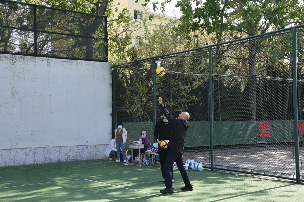 陈克正为“春华杯”、“巾帼杯”教职工排球赛开球。