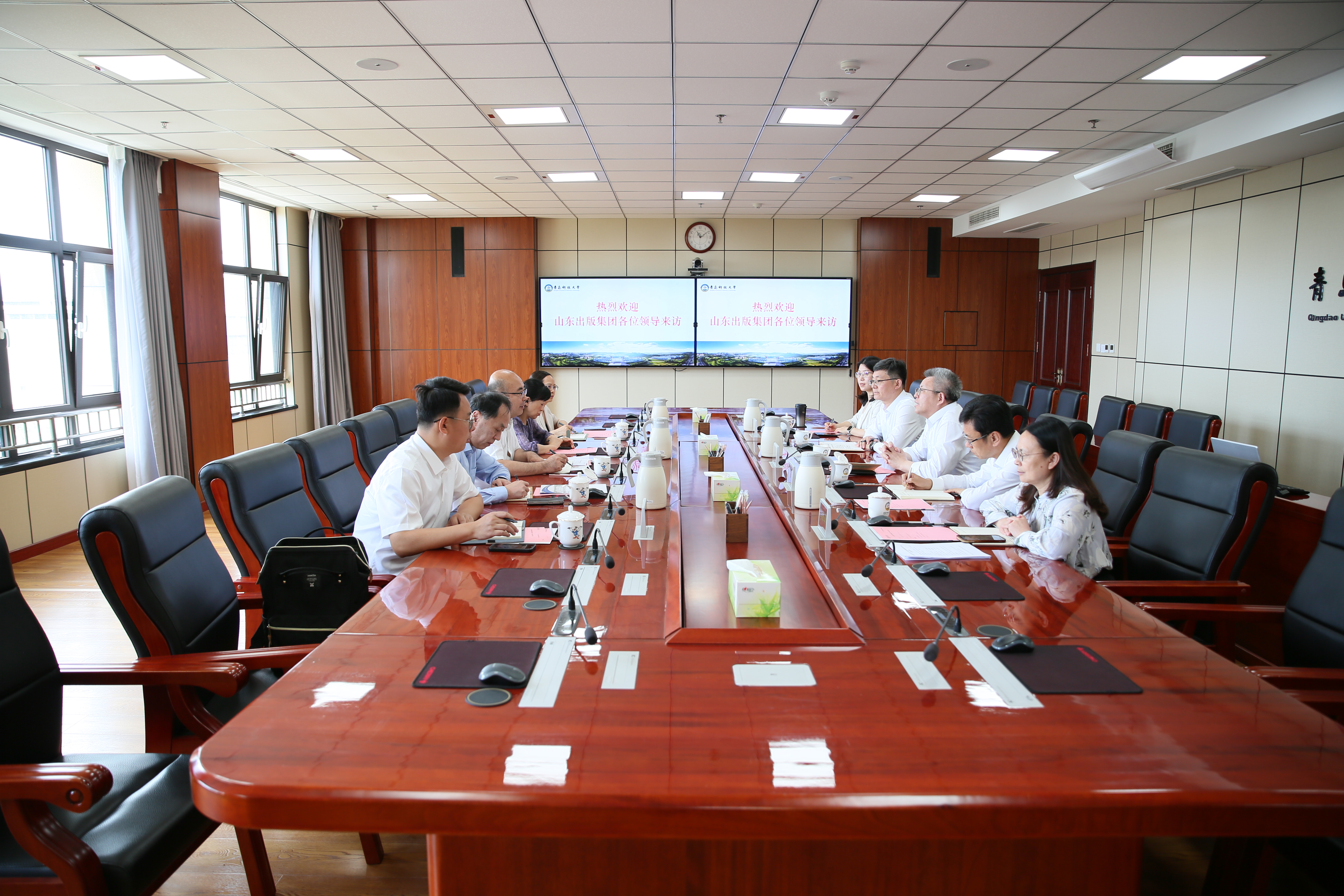 6月10日上午,山东出版集团总经理郭海涛一行来校调研交流。党委书记杨天梅出席座谈会。