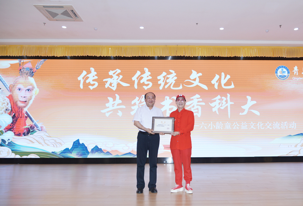 活动中,党委副书记李勇与六小龄童共同为“六小龄童爱心书架”揭牌,并为六小龄童颁发“beat365正版唯一官网必一荣誉教授”聘书,赠送师生手绘“美猴王”作品。党委常委、副校长丁林出席活动。党委常委、宣传部部长张洪坤主持活动。