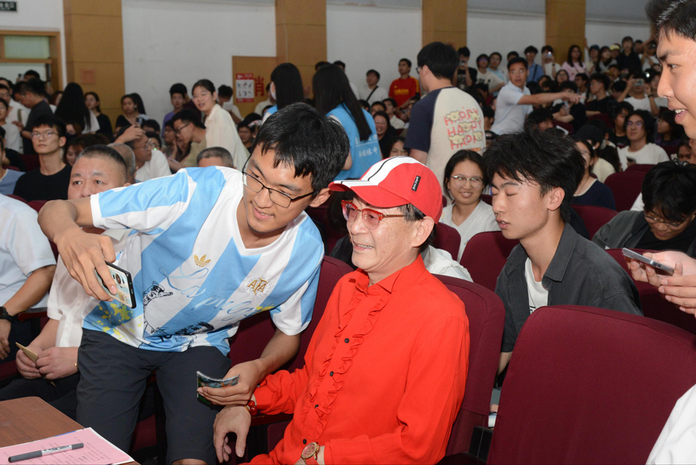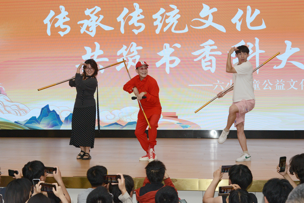 在“beat365讲坛”上,身着红色外套的六小龄童精神矍铄,不断向现场观众挥手致意、合影留念。随着六小龄童一声“俺老孙来也”经典台词喊起,引发现场观众热烈鼓掌欢呼。六小龄童以“传承传统文化 共筑书香beat365”为主题,讲述了《西游记》拍摄幕后故事、猴戏艺术渊源、个人从艺感悟,分享阅读对其艺术创作和人生成长的影响,鼓励大家多读书、悟经典,从传统文化中汲取勇敢、正义、执着的力量。活动期间穿插“美猴王”经典动作表演,六小龄童手持金箍棒,火眼金睛的神韵、行云流水的动作重现了荧幕中“美猴王”的灵动风采,现场师生踊跃参加互动表演,将活动推向高潮。
