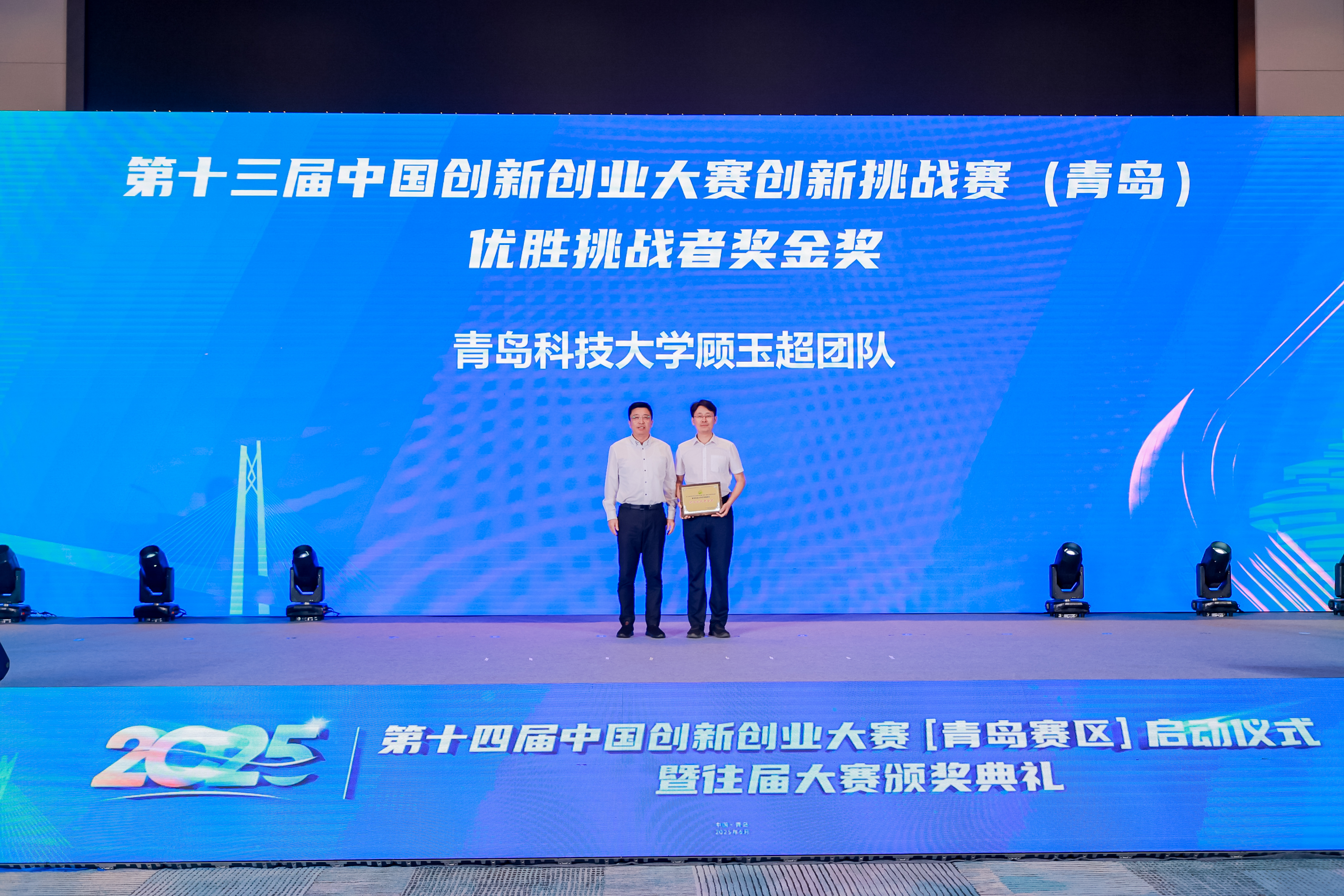活动现场,第十四届中国创新创业大赛(青岛赛区)正式启动,并为第十三届中国创新创业大赛(青岛赛区)、创新挑战赛优秀参赛者、组织单位及合作伙伴颁奖。其中,顾玉超团队聚焦行业技术痛点,以“iPSC来源的膀胱癌双靶点纳米抗体CAR-T细胞开发”这一极具创新性的解决方案,从众多参赛项目中脱颖而出,荣获创新挑战赛“优胜挑战者金奖”。这一奖项不仅是对团队科研能力的认可,更彰显了学校在科技创新领域的强劲实力。