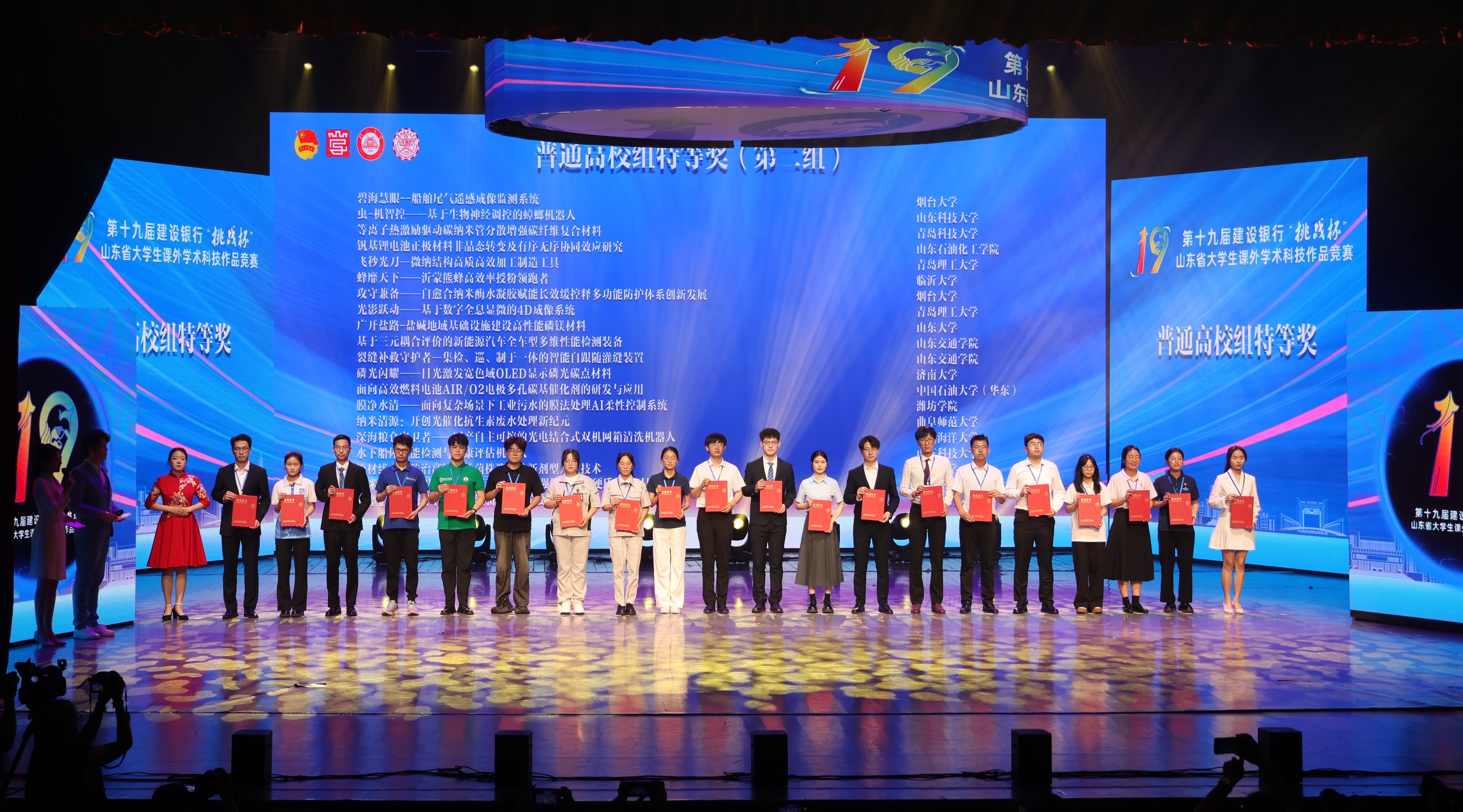 近日,第十九届建设银行“挑战杯”山东省大学生课外学术科技作品竞赛(普通高校组)在临沂大学落幕。beat365正版唯一官网必一参赛作品获得特等奖2项、一等奖6项、二等奖4项、三等奖5项。