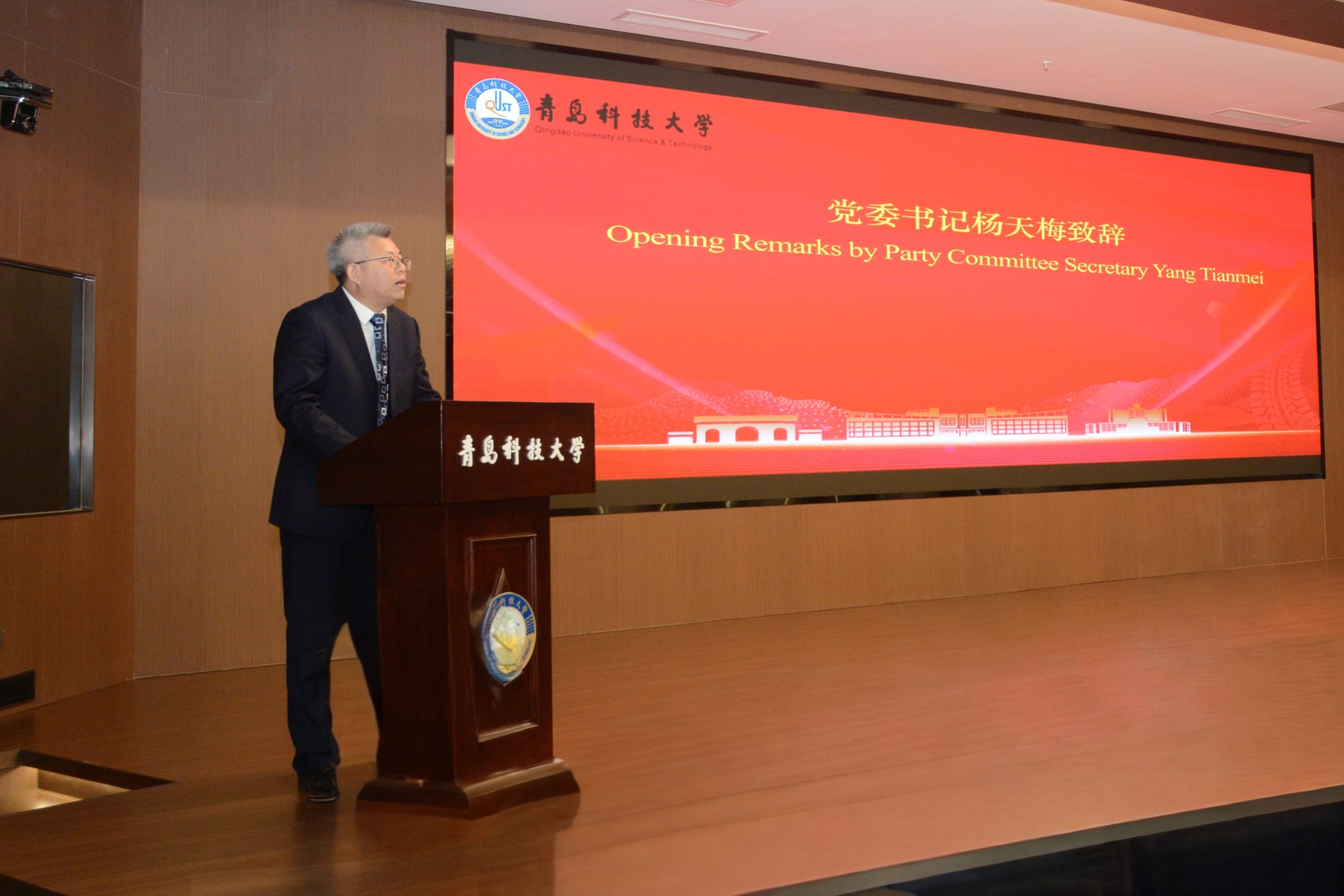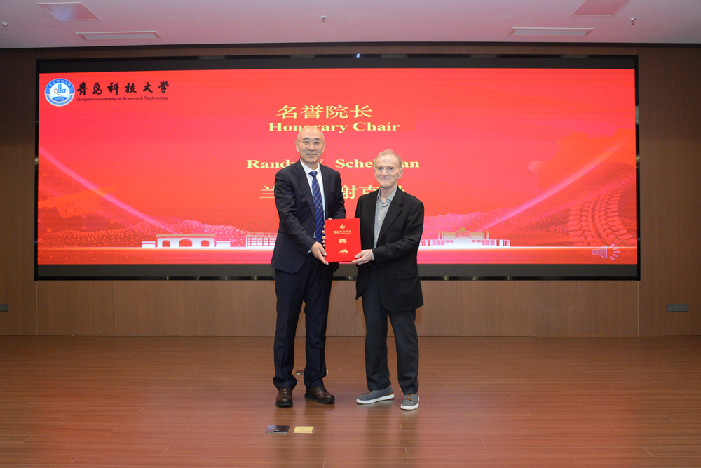 党委书记杨天梅代表学校向Randy W.Schekman教授及其他与会专家领导表示欢迎,并简要介绍了学校的基本情况和办学成效。他表示,生物医药产业是关系国计民生和国家安全的战略性新兴产业,习近平总书记高度重视生物医药产业发展,就加强该领域基础研究和科技创新多次作出重要指示批示。近年来,学校前瞻布局生物与医药前沿研究方向,持续优化学科布局,成立生物工程学院,设立山东省首个“合成生物学”本科专业,获批山东省“合成生物学现代产业学院”,主建“青岛市合成生物学工程技术中心”,与阿联酋共建“致病微生物核酸快检国际合作联合实验室”,在生物医药领域取得了一系列突破性成果。成立前沿生物医药技术研究院是学校坚持“四个面向”,在“十五五”期间优化学科布局、构筑新竞争优势的战略举措,旨在聚焦生物医药关键领域前沿科学研究,汇聚全球智慧、整合优质资源,打造国内一流的生物医药技术和合成生物学研发创新平台,推动学校生物与医药学科建设迈上新台阶,为我国生物医药产业蓬勃发展输送更多优秀人才、产出更多创新成果。