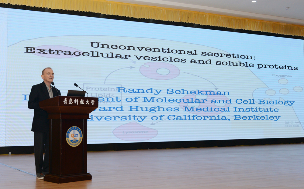 仪式后,Randy W.Schekman教授作了题为《Extracellular vesicles and biomedicalapplications》的报告,介绍了当前学术界在生物与医药领域的最新研究进展,分享了其几十年深耕科研的学术经历。报告内容深入浅出、前瞻性强,有效拓宽了师生科研视野,为现场师生提供了一场世界级的学术盛宴。