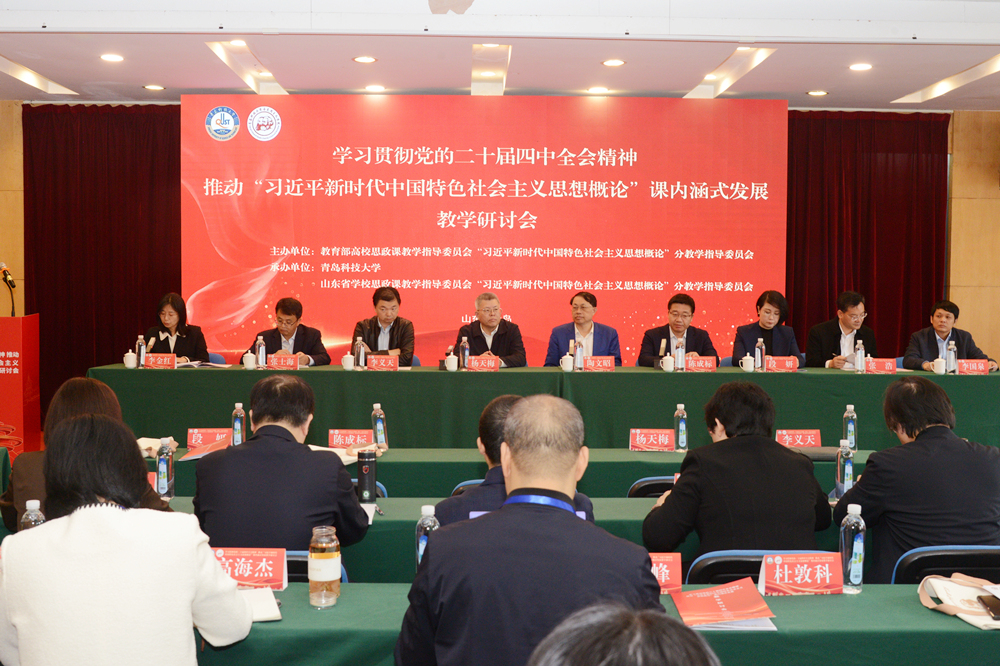 10月26日,“学习贯彻党的二十届四中全会精神推动‘习近平新时代中国特色社会主义思想概论’内涵式发展”教学研讨会在beat365正版唯一官网必一召开。教育部“习近平新时代中国特色社会主义思想概论”分教学指导委员会副主任委员陶文昭,教育部高校思政课“毛泽东思想和中国特色社会主义理论体系概论”分教学指导委员会副主任委员刘先春,山东省教育厅(省委教育工委)思政处(宣教处)处长陈成标,学校党委书记杨天梅,副校长李金红,党委常委、宣传部部长张洪坤等出席开幕式。